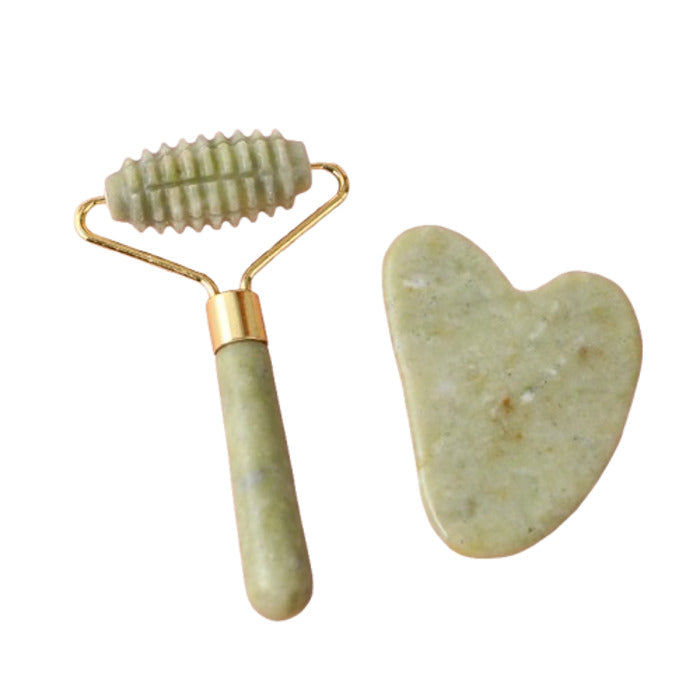 Set de Masaje Facial 2 en 1 Incluye Rodillo de Jade Texturizado y Piedra Gua Sha Yoyoso