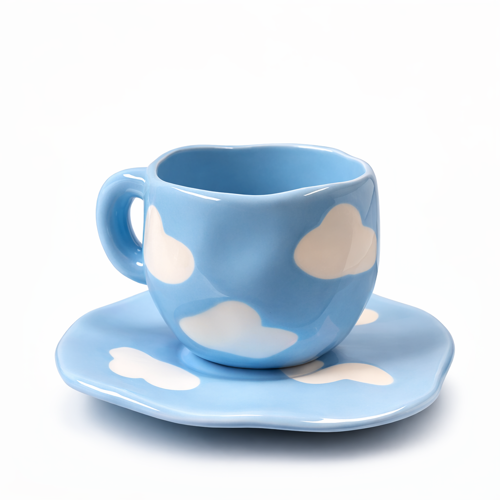 Set de Taza y Plato de Cerámica Diseño Artesanal de Nubes de 250ml Yoyoso