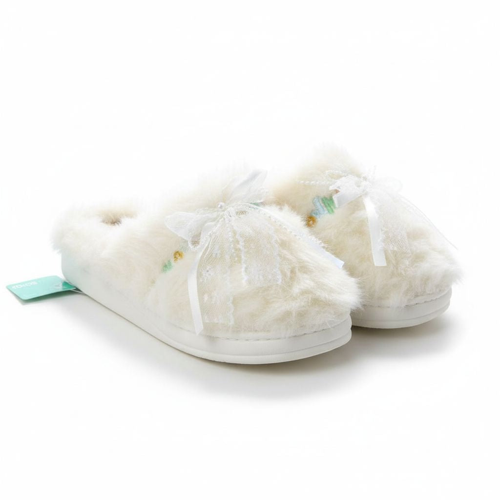 Pantuflas de Mujer Blancas Suaves con Moño de encaje Decorativo Talla 38-39 Yoyoso
