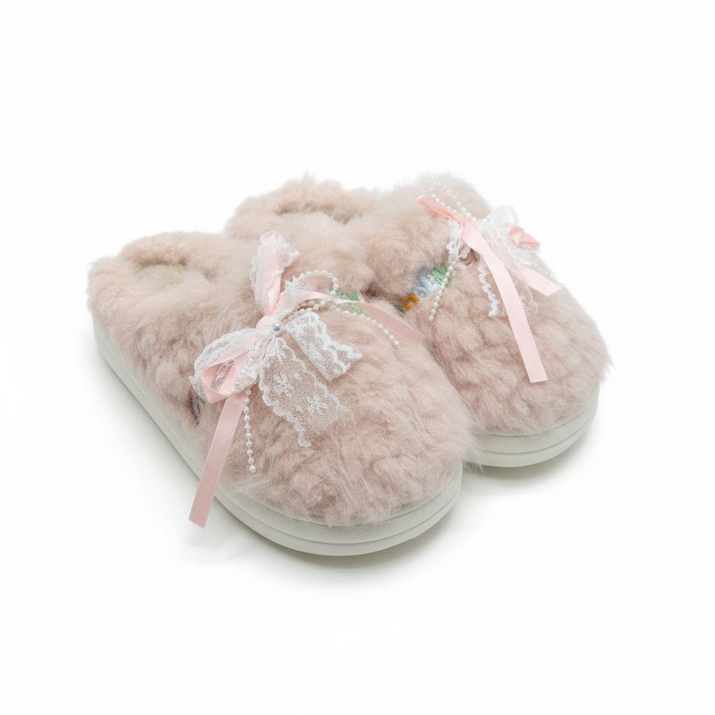 Pantuflas de Mujer Rosadas Suaves con Moño de encaje Decorativo Talla 38-39 Yoyoso