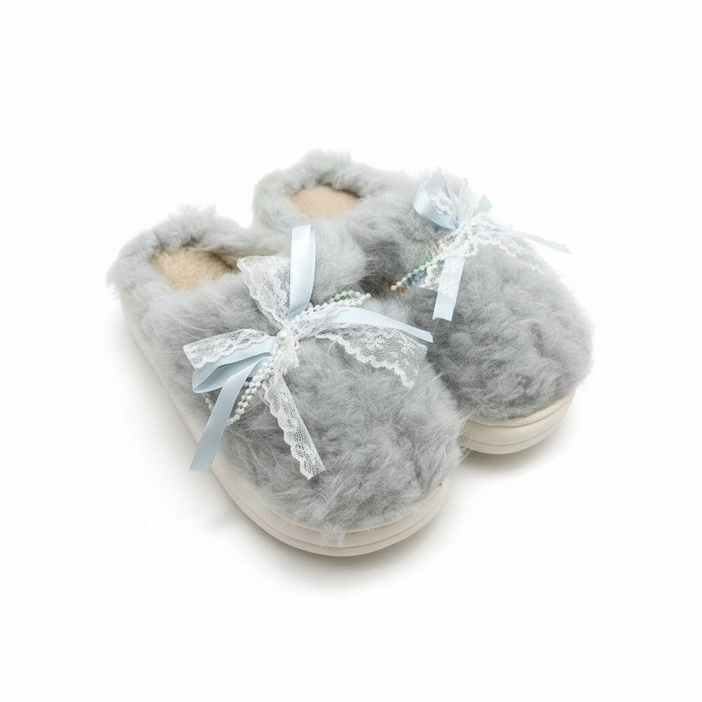 Pantuflas de Mujer Azules Suaves con Moño de encaje Decorativo Talla 40-41 Yoyoso