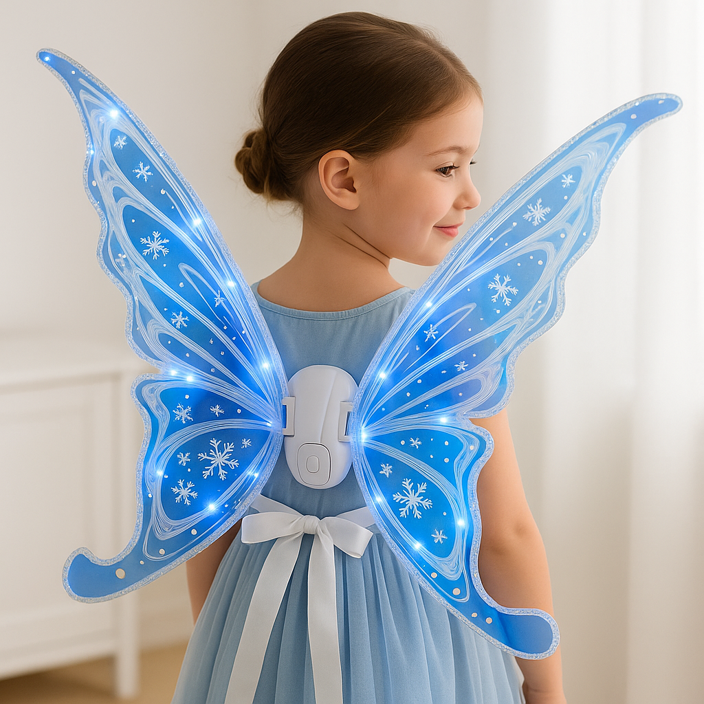 Descubre la magia del invierno con las Alas Eléctricas Frozen Spirit, inspiradas en el brillo del hielo y la elegancia de la nieve. Estas alas luminosas combinan diseño, fantasía y tecnología para crear un accesorio encantador, ideal para juegos, disfraces o presentaciones. Perfectas para niñas que aman soñar y brillar.