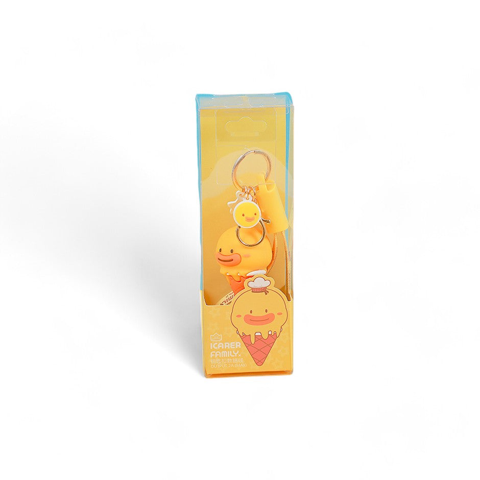 ¡No vuelvas a quedarte sin batería por olvidar tu cable! Este tierno llavero de Pato Ice Cream de Icarer Family esconde en su interior un cable de datos de alta velocidad para iPhone. Es el accesorio perfecto para llevar en tus llaves o mochila, combinando un diseño increíble con la utilidad que necesitas en tu día a día.