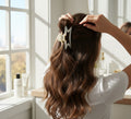 Dale un toque de magia a tu look diario con nuestra Pinza para el Cabello Stardust. Con un diseño geométrico único en forma de estrella de cinco puntas, este accesorio no es solo una herramienta de peinado, sino una pieza de joyería capilar.