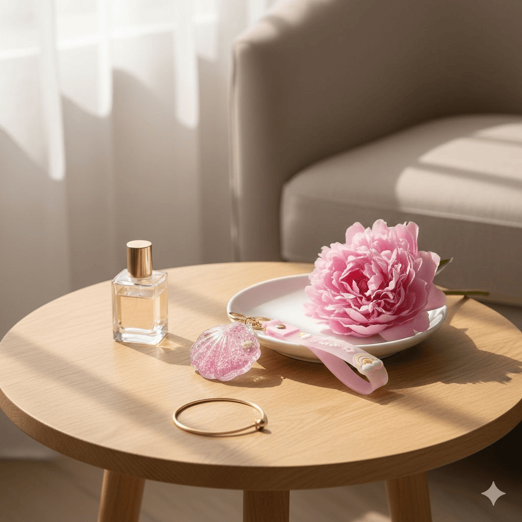 Este accesorio es la combinación perfecta de ternura y estilo. Presenta un encantador charm en forma de concha marina relleno de purpurina iridiscente que brilla con cada movimiento, acompañado de una suave correa de silicona en tono rosa pastel decorada con motivos de arcoíris y nubes. Es el detalle ideal para personalizar tus llaves, mochila o bolso favorito.