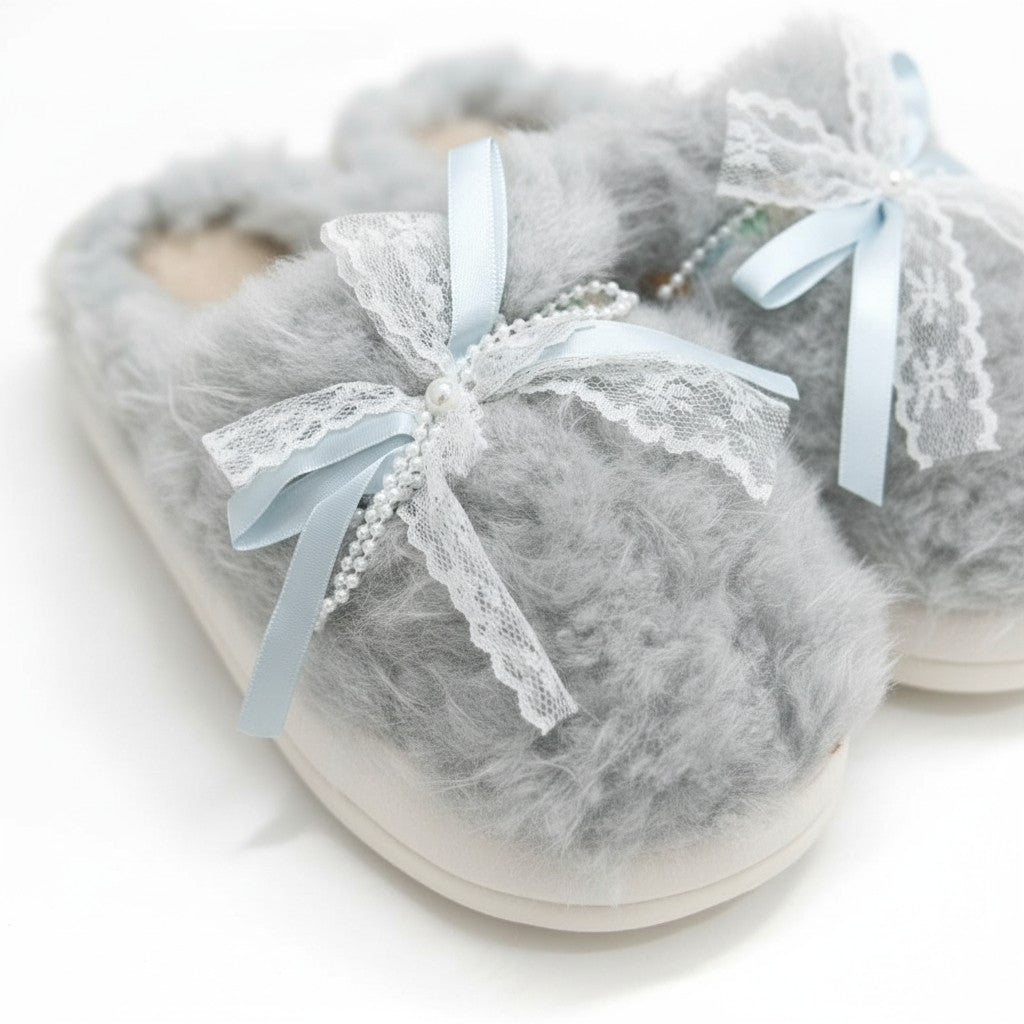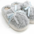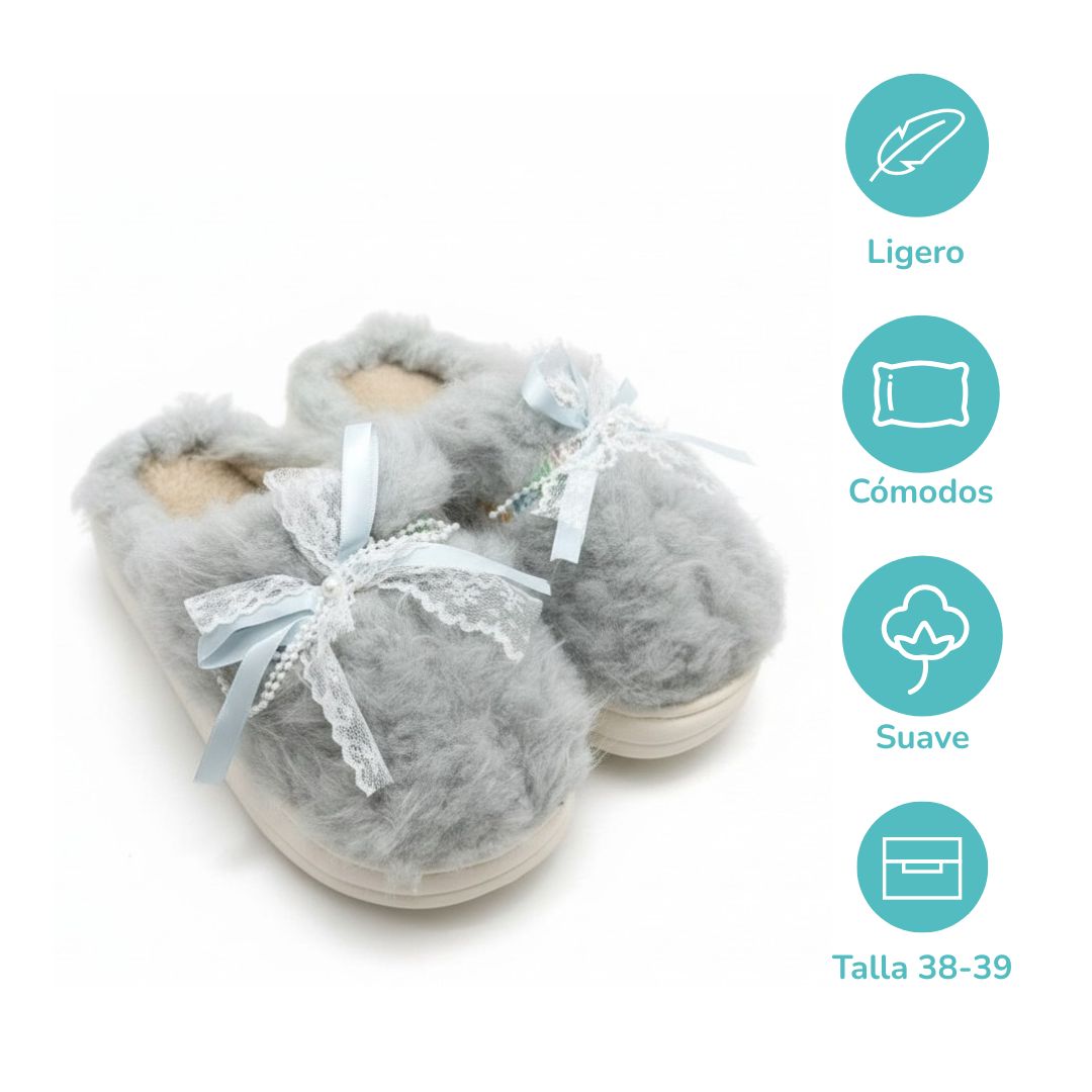 Pantuflas de Mujer Azules Suaves con Moño de encaje Decorativo Talla 38-39 Yoyoso