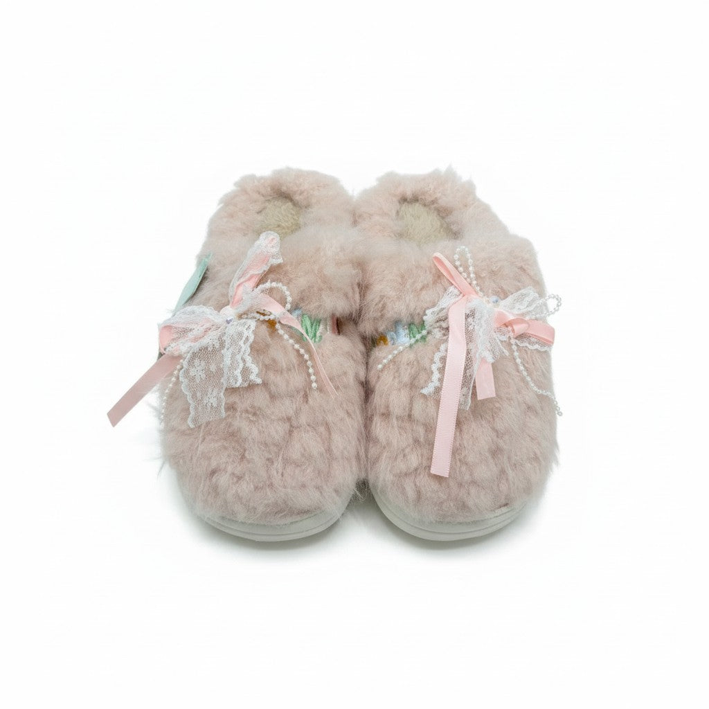 Pantuflas de Mujer Rosadas Suaves con Moño de encaje Decorativo Talla 36-37 Yoyoso