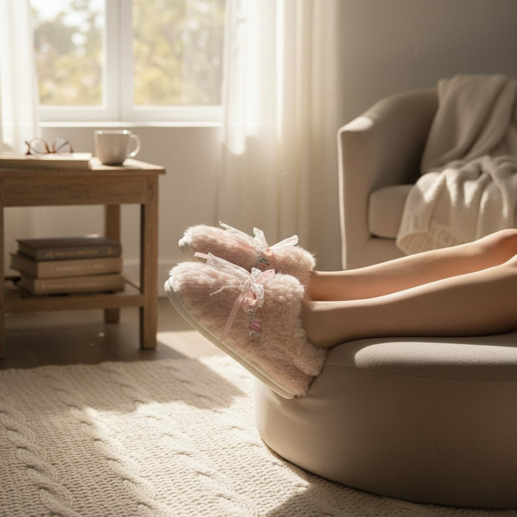 Pantuflas de Mujer Rosadas Suaves con Moño de encaje Decorativo Talla 38-39 Yoyoso