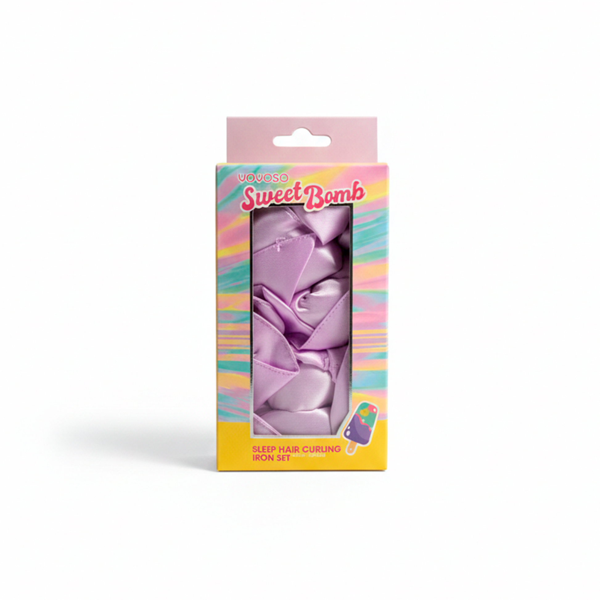 Estética Sweet Bomb: Presentación encantadora en empaque decorado con motivos de paletas de helado, ideal para regalar o para tu rutina de belleza personal.