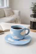 Set de Taza y Plato de Cerámica Diseño Artesanal de Nubes de 250ml Yoyoso