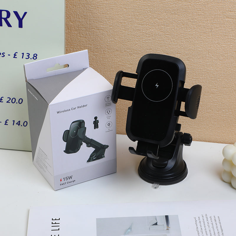 Soporte de celular con cargador inalámbrico integrado Yoyoso. Su diseño ajustable y base antideslizante brindan estabilidad y comodidad mientras conduces.