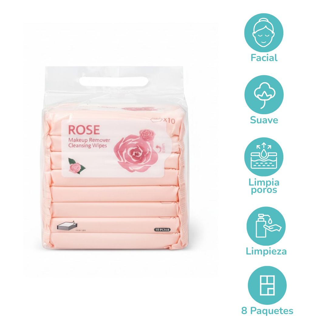 Toallitas Desmaquillantes de Rosa Pack x8 Limpieza Facial Suave e Hidratante Yoyoso